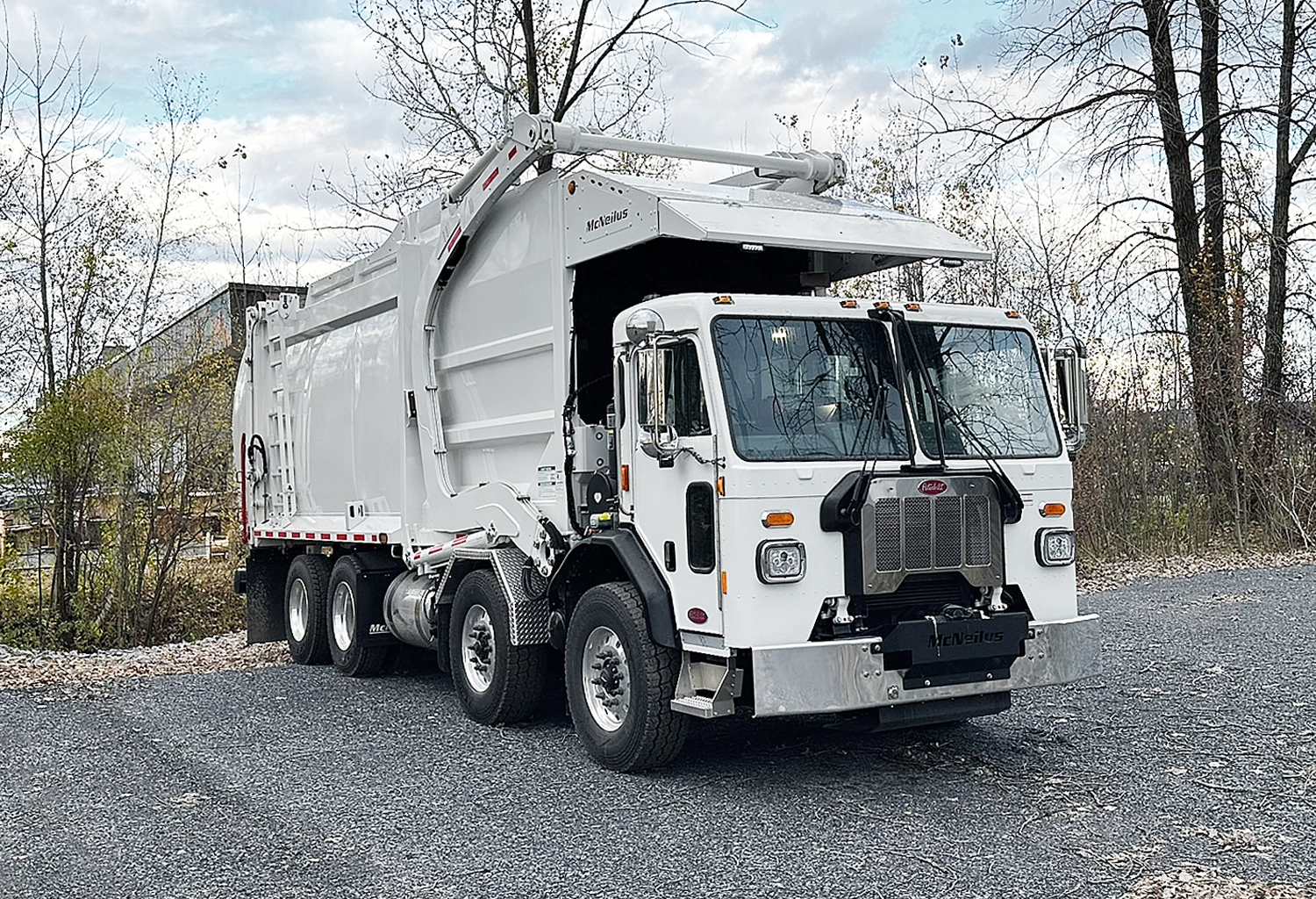McNeilus front-load trucks are designed to meet the needs of businesses, whether on demanding commercial routes or in densely populated residential areas.